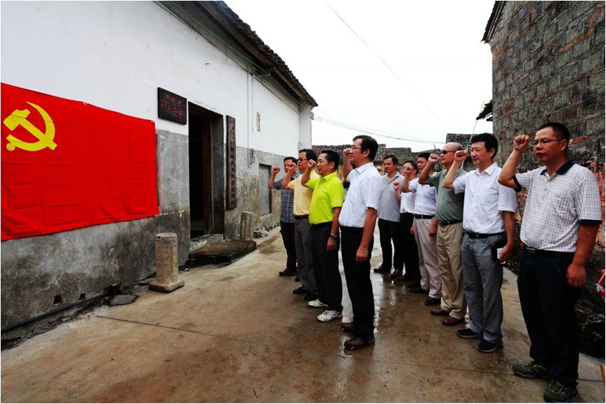(圖為黨委中心組成員到柳城縣愛(ài)國(guó)教育基地——桂黔邊人民保衛(wèi)團(tuán)柳城武工隊(duì)活動(dòng)舊址現(xiàn)場(chǎng)學(xué)習(xí))